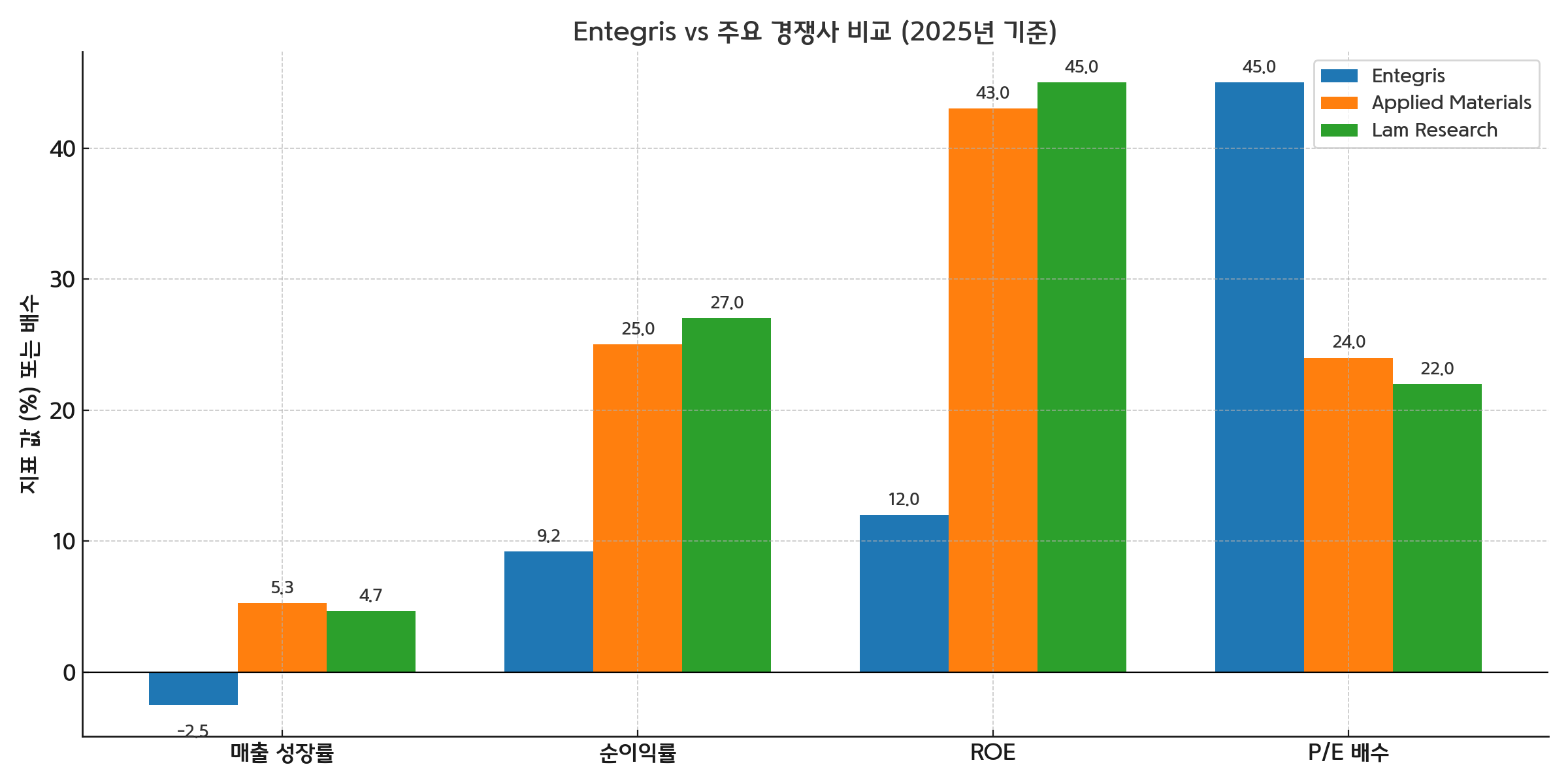 ▶ 결론: 단기적으로는 Entegris의 성장 모멘텀이 약하지만, 경쟁사들은 안정적 성장세를 유지하고 있습니다.