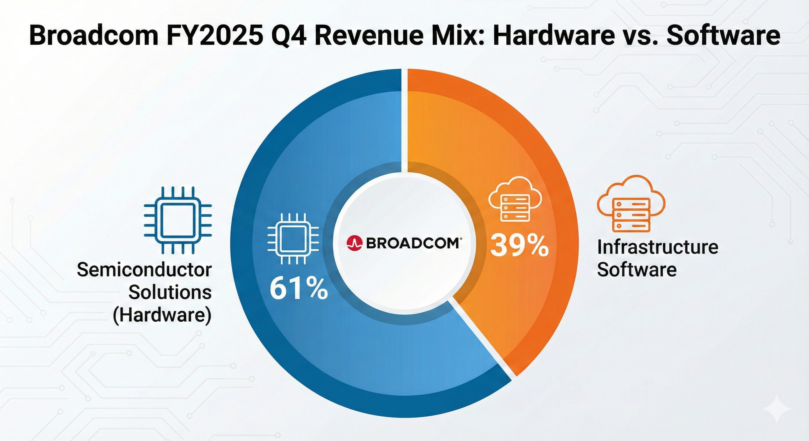 문제는 여기서 발생합니다. 지금 브로드컴은 AI 열풍으로 하드웨어 매출이 폭발적으로 늘어나고 있습니다. 매출 덩치는 커지는데, 상대적으로 마진율이 낮은 하드웨어 비중이 높아지다 보니 회사 전체의 평균 이익률(%)은 오히려 떨어지는 현상이 발생하는 것입니다. 투자자들은 이 수치적인 '마진 하락'을 악재로 받아들였습니다.