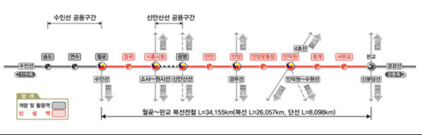 장곡~서판교 부근만 신설하고 나머지는 기존 철도를 이용합니다.