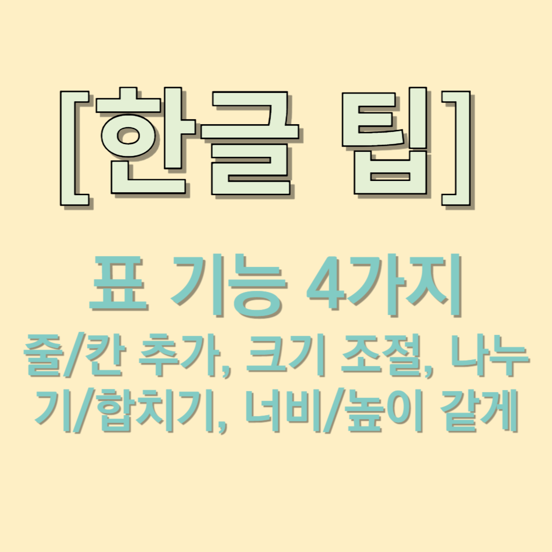 이 블로그 글에서는 한글에서 표 줄/칸 추가, 셀 나누기/합치기 등을 활용한 방법과 관련 단축키에 대해 설명드리겠습니다.